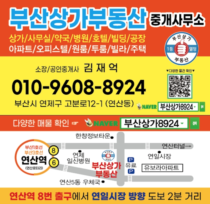 연산역인근에 위치한 부산상가부동산 중개사무소입니다~